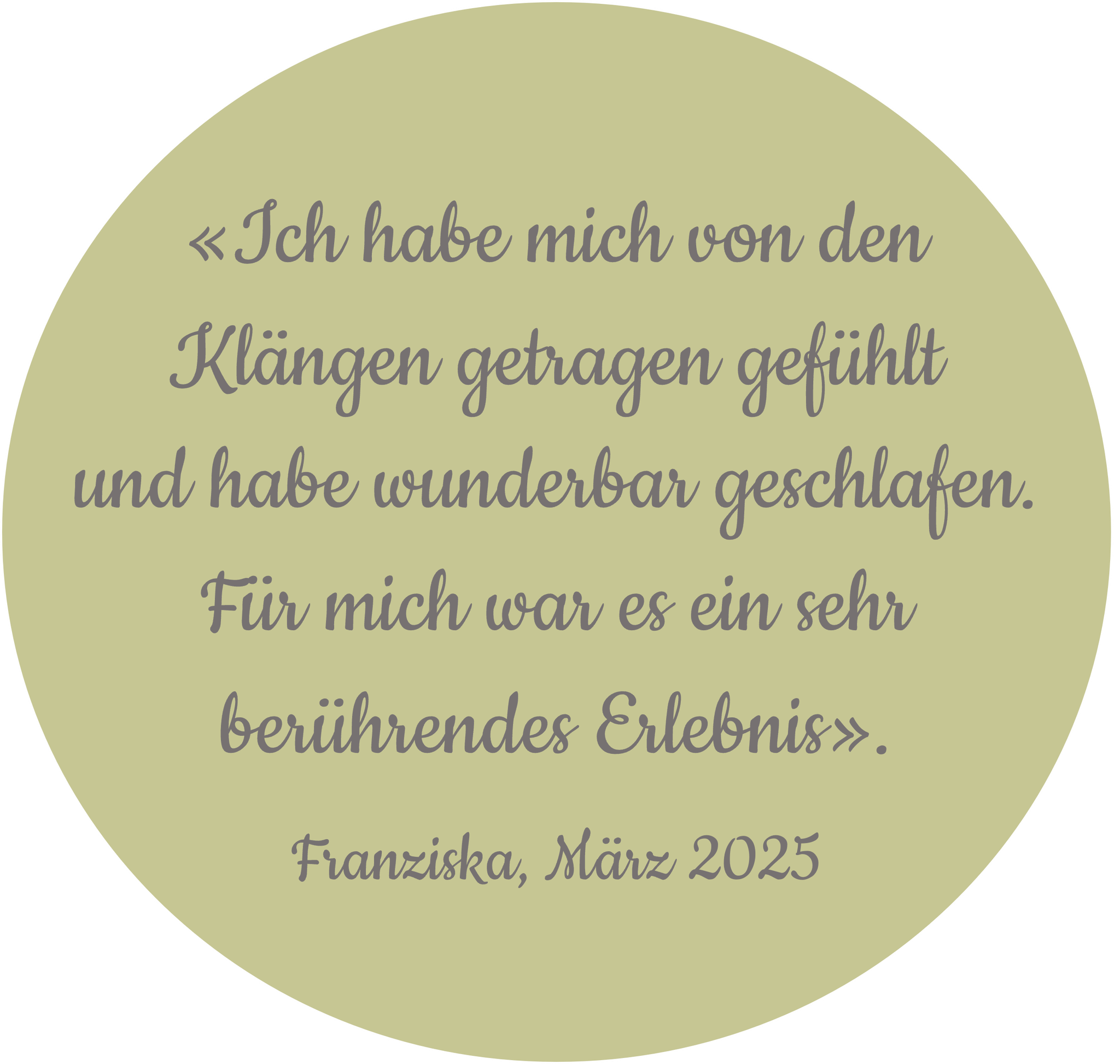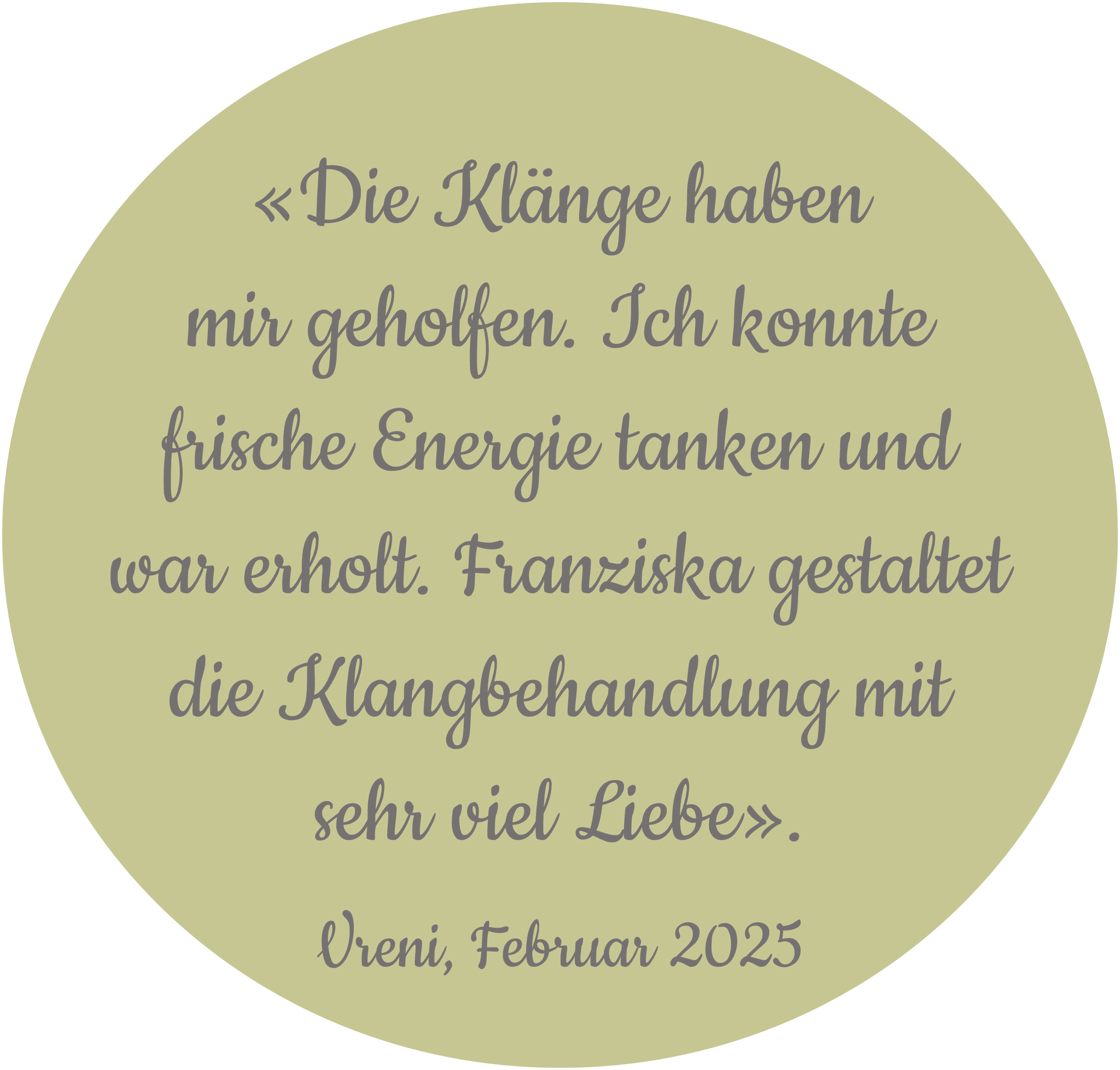 Ich sehe mein Tun als Klangpraktikerin als mein persönliches Herzprojekt, in das ich all mein Erlerntes und Erfahrenes, das ich auch sehr gerne mit Gleichgesinnten teile, einzupacken versuche. Ich besuche regelmässig Kurse, Seminare und Workshops. Ebenfalls besuche ich seit langem Malkurse, in denen wir unsere persönlichen Grenzen zu sprengen versuchen. Einfach aus Leidenschaft und weil es mich fasziniert...